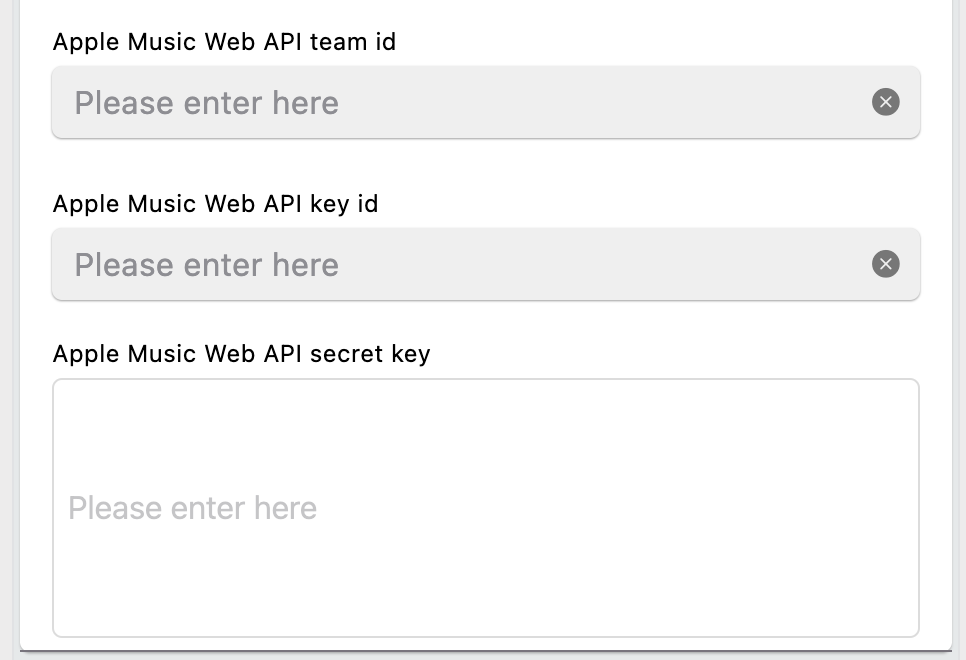You must also enter the Apple Music Web API team ID, key ID, and secret key in the Roonmatrix app config, so that you can use the Coverplayer’s search function for Apple Music as well.