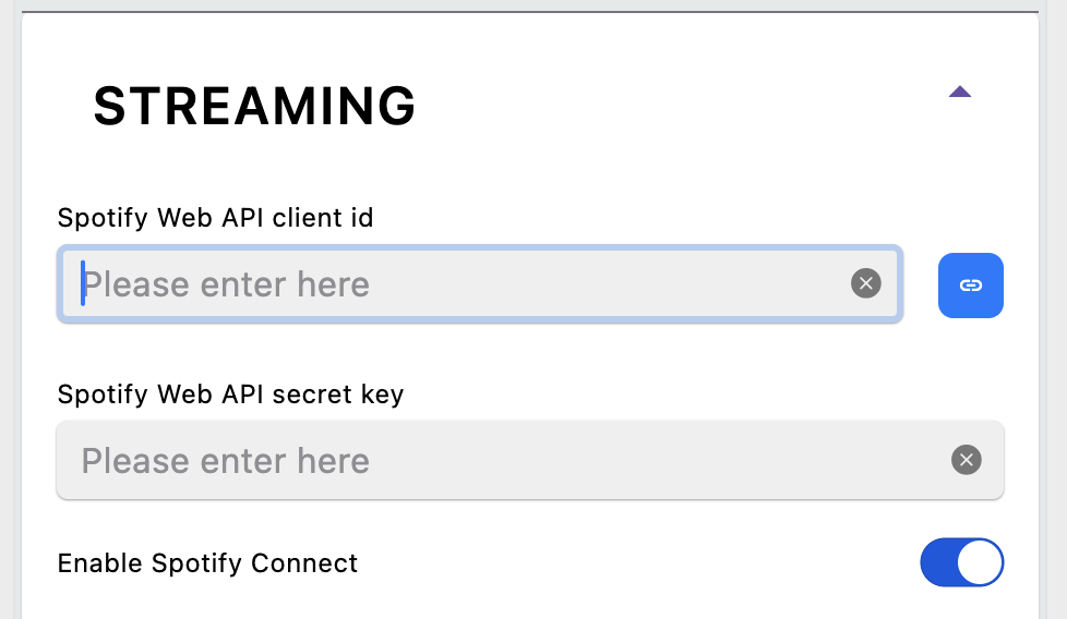 You’ll need to enter the Spotify Web API Client ID and API Secret Key from your account into the Roonmatrix app configuration.