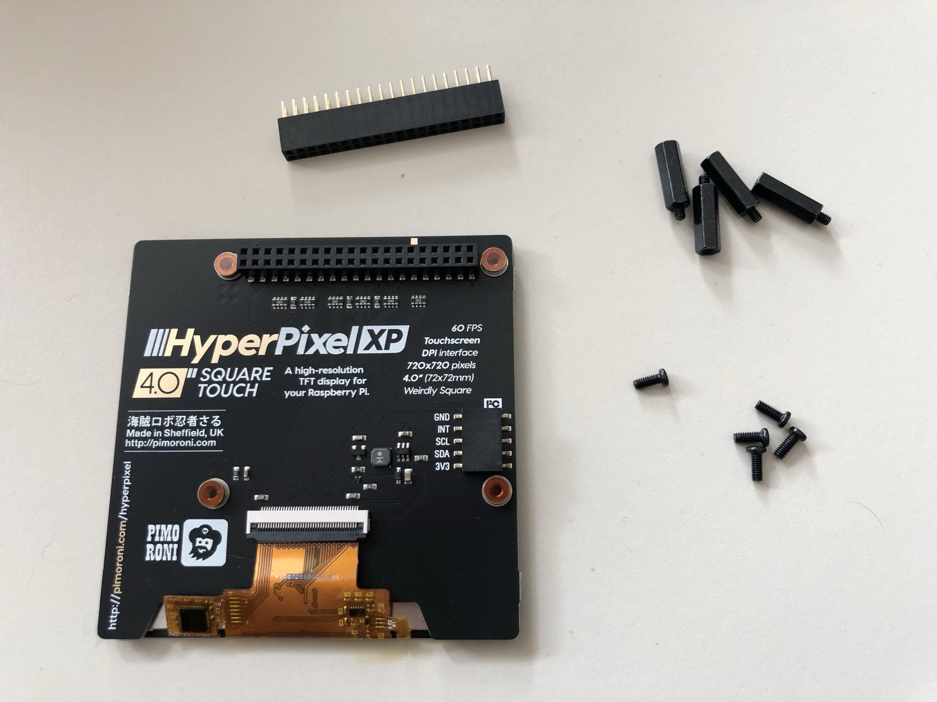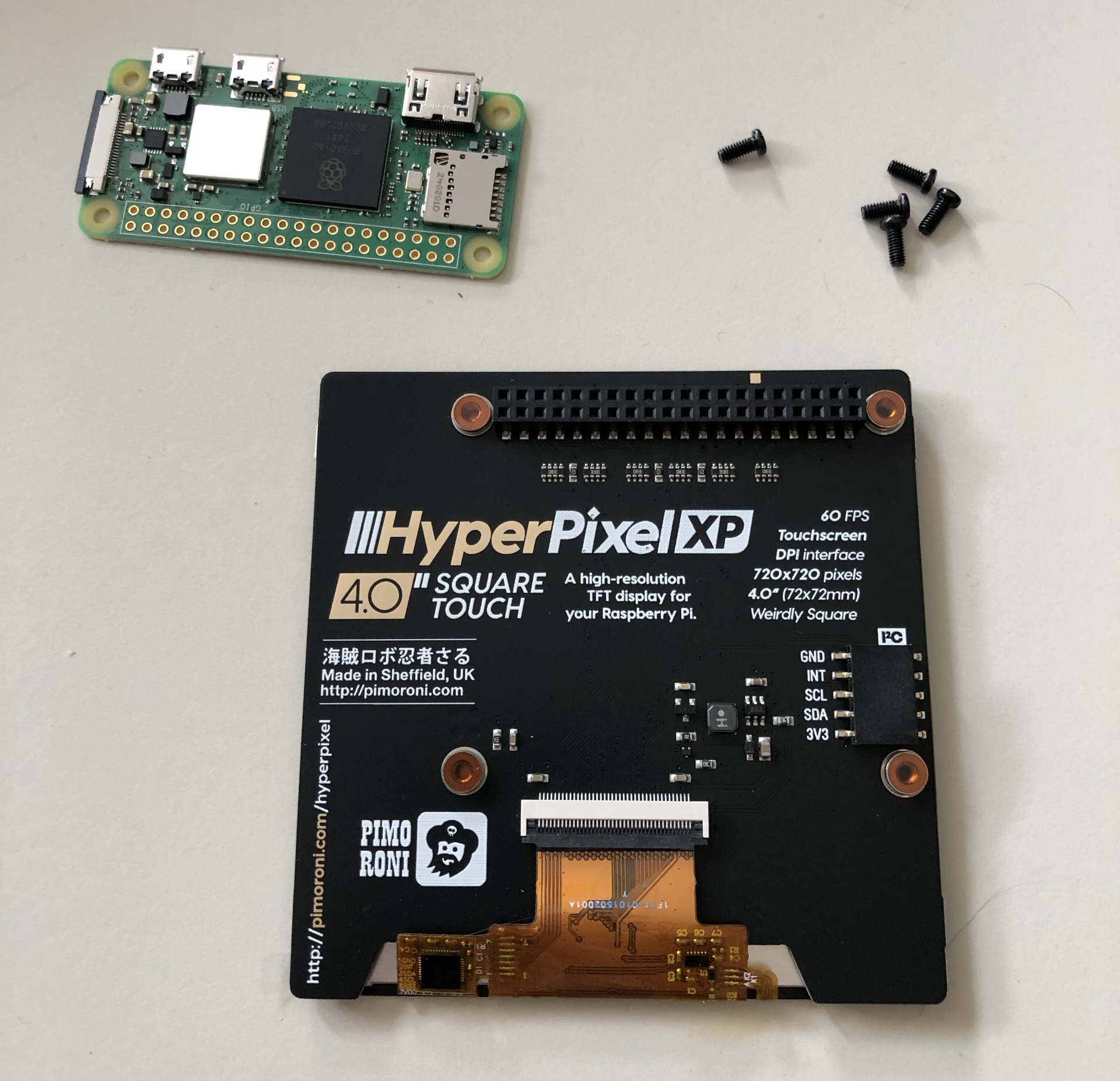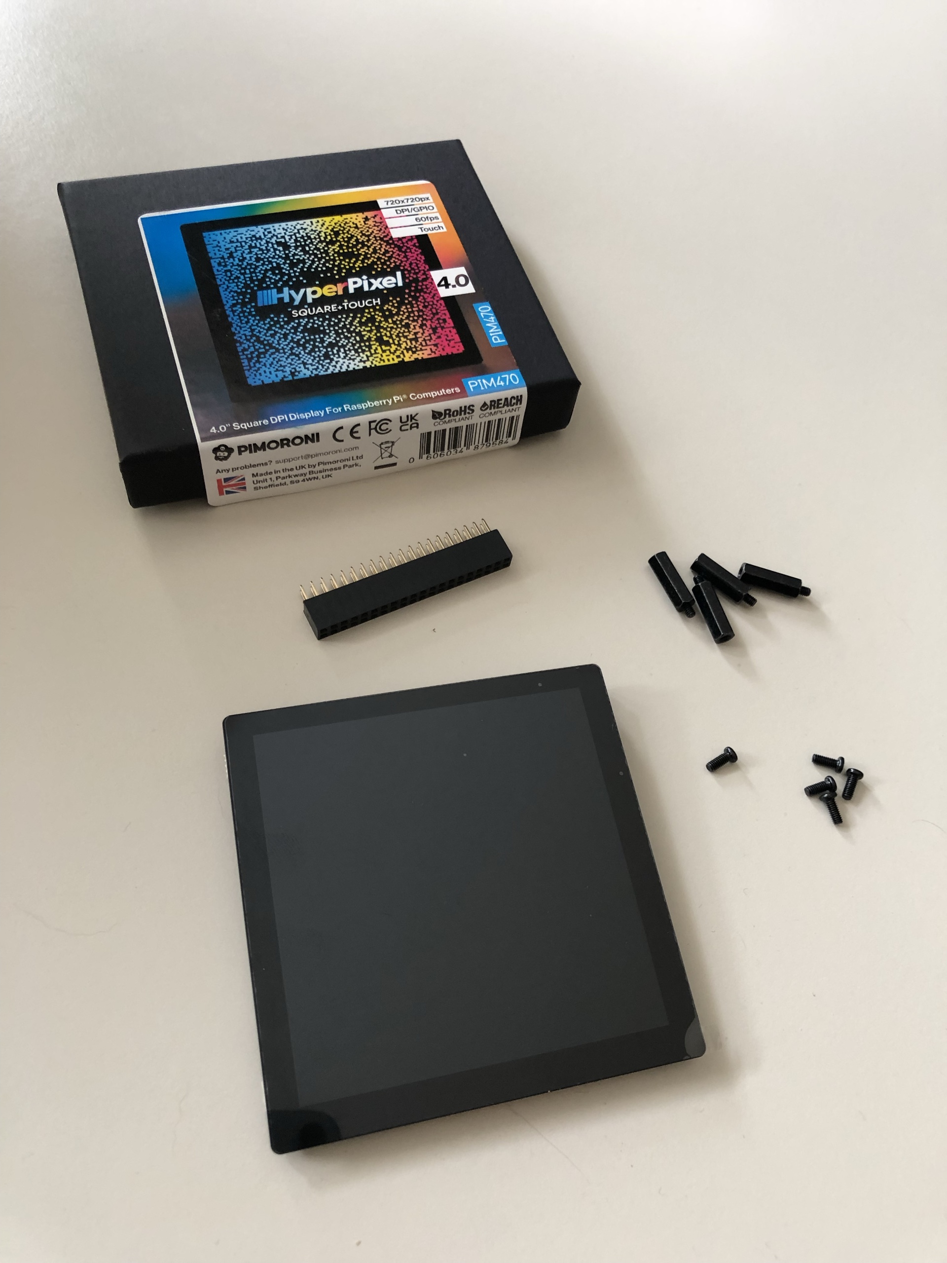- ein Pimoroni HyperPixel 4.0 Touch-Farbdisplay