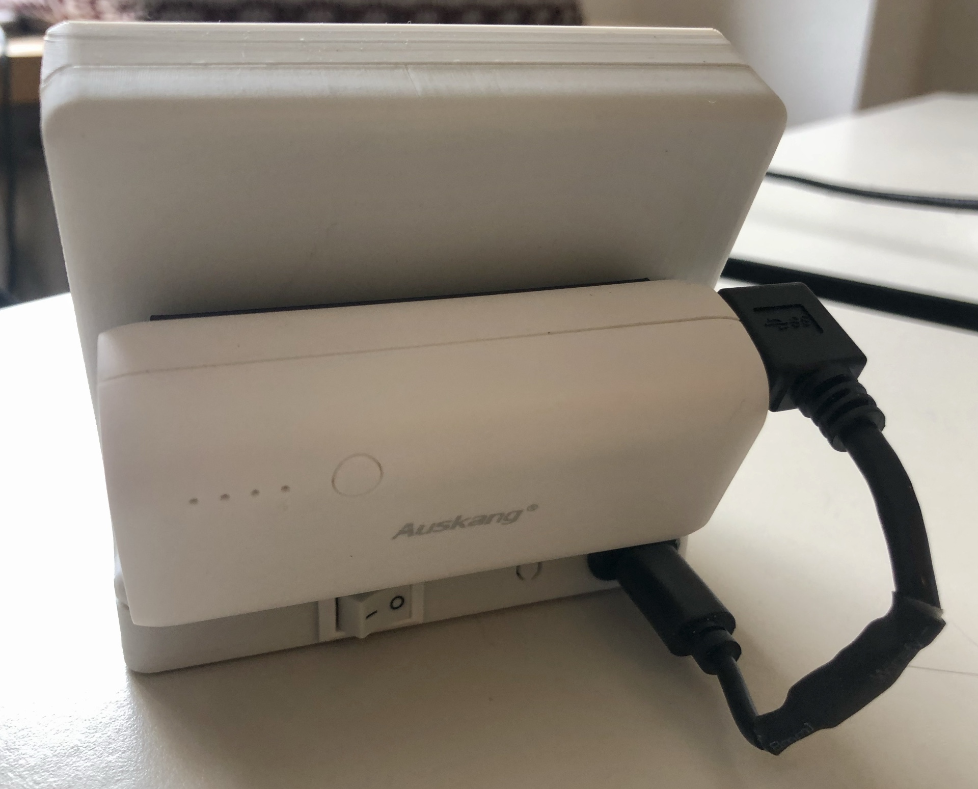 Optional kann man den Coverplayer mit einer Powerbank als Stromquelle betreiben. Diese reicht für viele Stunden bis zu einem ganzen Tag oder mehr.