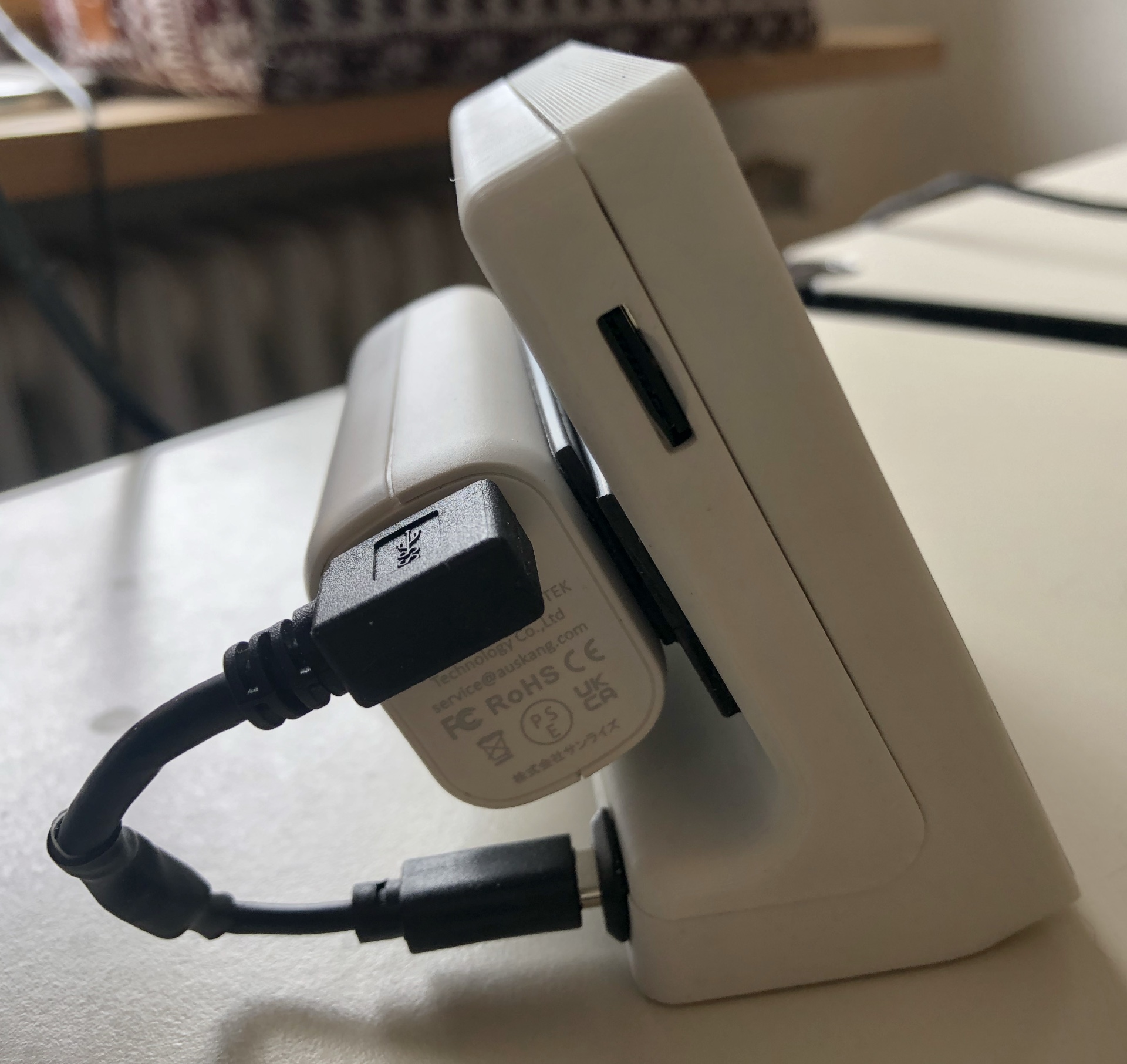 Das Stromkabel (USB-C auf USB-A) gibt es fertig zu kaufen, aber vermutlich nicht in der optimalen, kurzen Länge.
